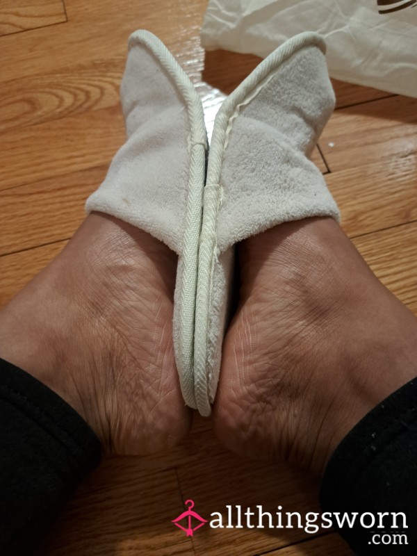 Very old well worn white Hollister Flip Flops ✨️ Ready to be worshipped and cleaned ✨️...