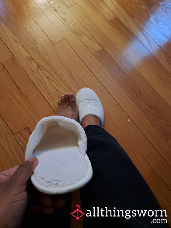 My blue slippers they are size women's large, made like a 7/8. These are my casual slippers i...