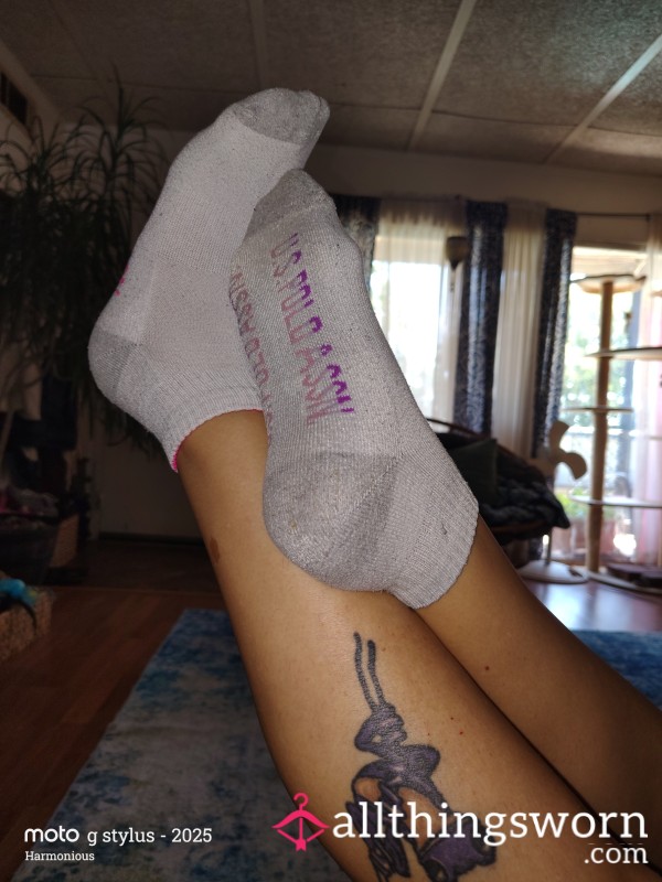 Some soft white cotton ankle socks ready to get them nice & nasty just for you ๐๐