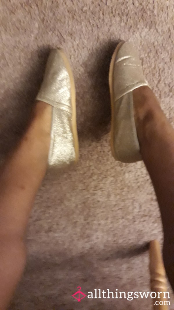 I'm not sure where these came from, they are Toms style flats, but they are definitely not Toms. Shiny and shimmery gold, that's why I loved them! They are made of super light foam in the sole, and so easy to wear. I wore them for so much of the last year, and it shows! My footprint is forever pressed into the insoles of these :)