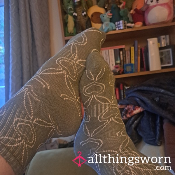 Cute Grey Well Worn Socks. Worn around the house for a week. Size 6...