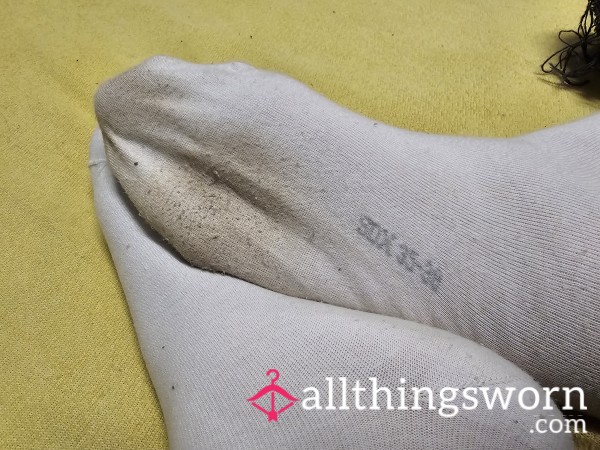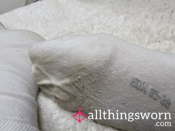 These white long socks have been worn in my rotation β and it shows. Thick with signs of wear, ground-in dirt, and real-life use, theyβre perfect for anyone who wants socks with authentic, no-fake, day-after-day wear.