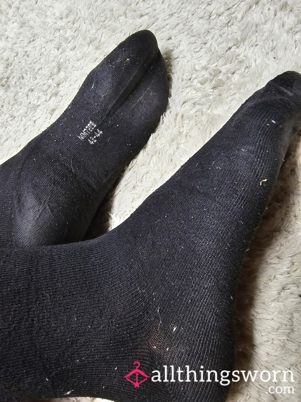 These are my loved black socks β worn regularly over few weeks during long days at work and at home. Theyβve truly been through it all with me: standing for hours at my grocery job, relaxing after shifts, and just living everyday life.