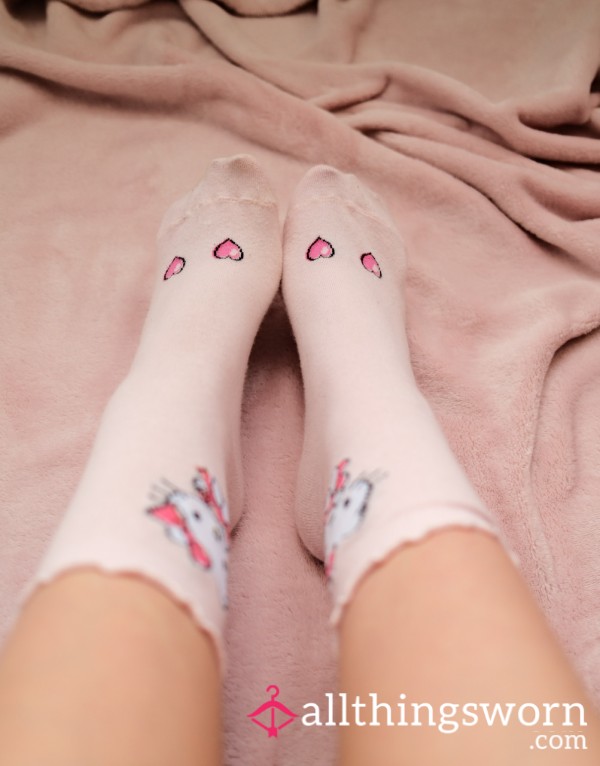 Dirty lilac socks worn for two days, smelly and dirty walked outside....