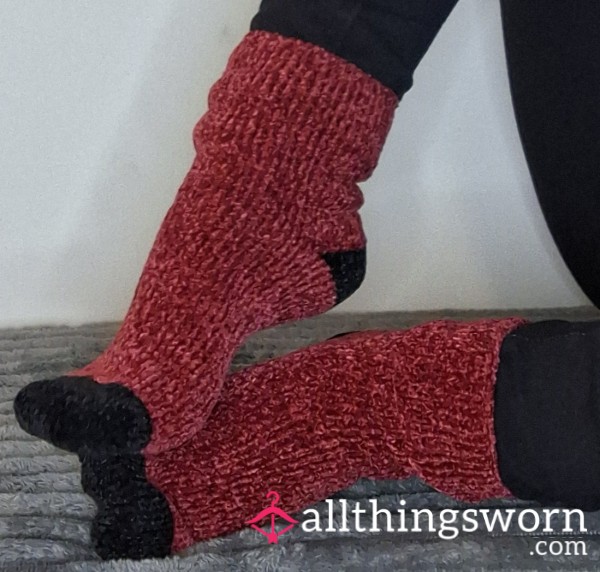 Mid rise super soft red & black fuzzy socks.