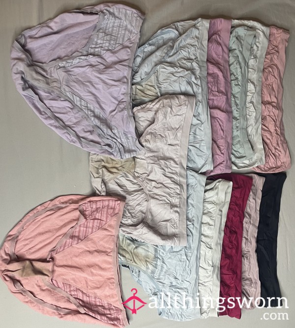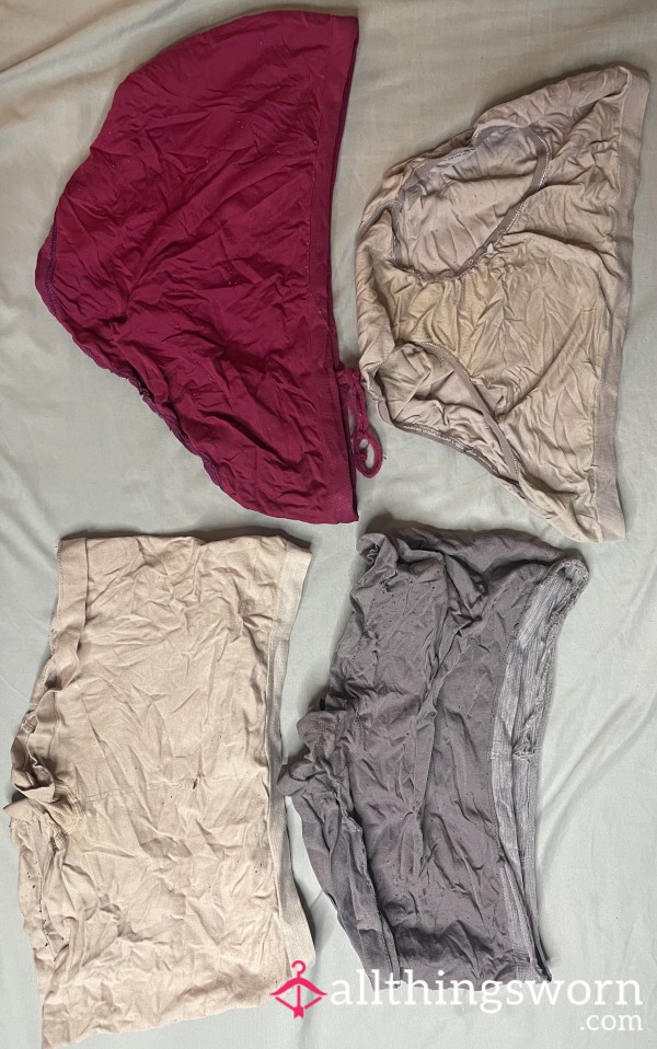 Torn, damaged, faded, or stained panties, each worn lovingly for a full 24 hours and discreetly sealed to preserve condition and scent. Choose from available colors and styles and receive an exclusive photo featuring me wearing your item of choice!