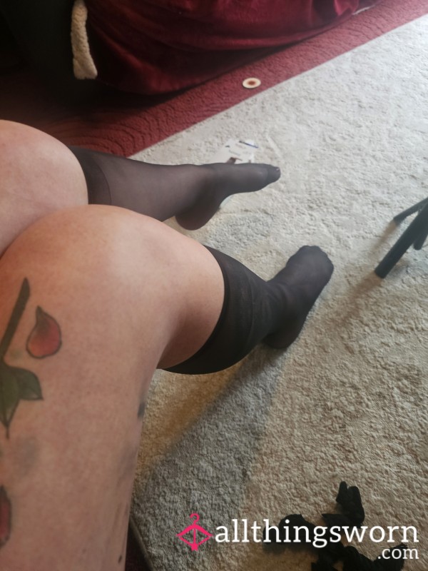 used fancy pantyhose - will be wearing them another day with boots to make more content then they...