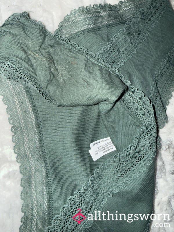 Lace cream thong panties worn for 24 hours can be worn for longer if wanted... the longer the...