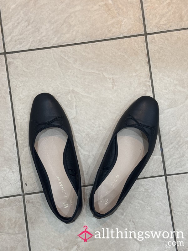 Size 9 work flats, very well worn, black work flats...
