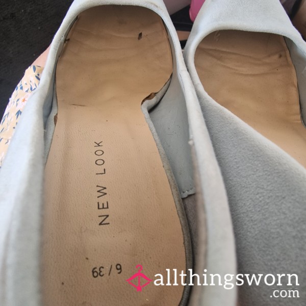 Super old well loved pair of clear pleasers. Size 9.5-10. The soles used to be bright white but...