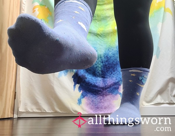 These black socks have been worn for a full 24 hours straight. Soft, warm, and carrying the scent...