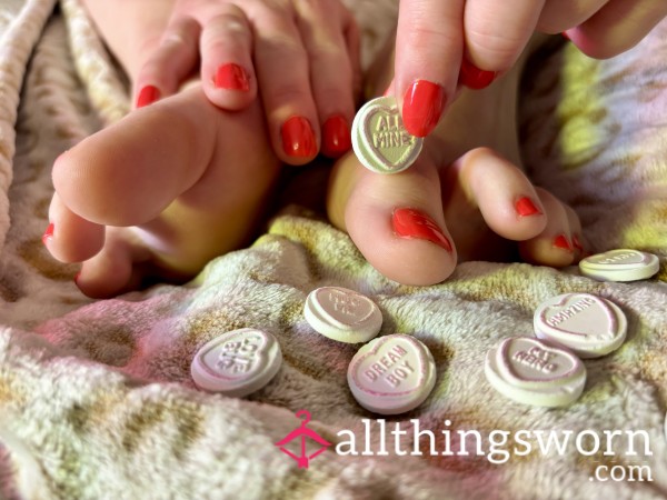 Love heart sweet straight from my mouth and feet (let me know if you want a specific message). They have been in my mouth, between my toes and much more. Sent still fresh in a sealed ziplock bag.