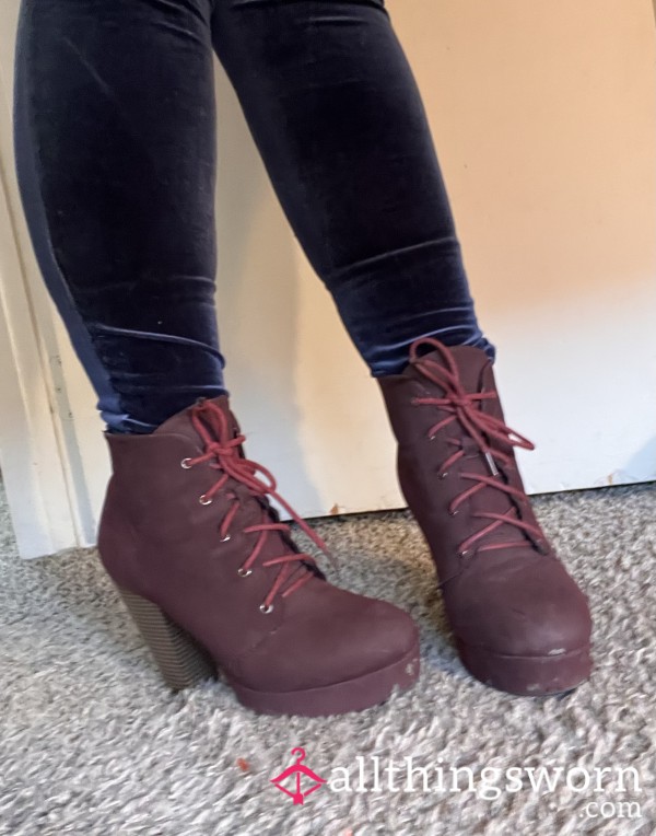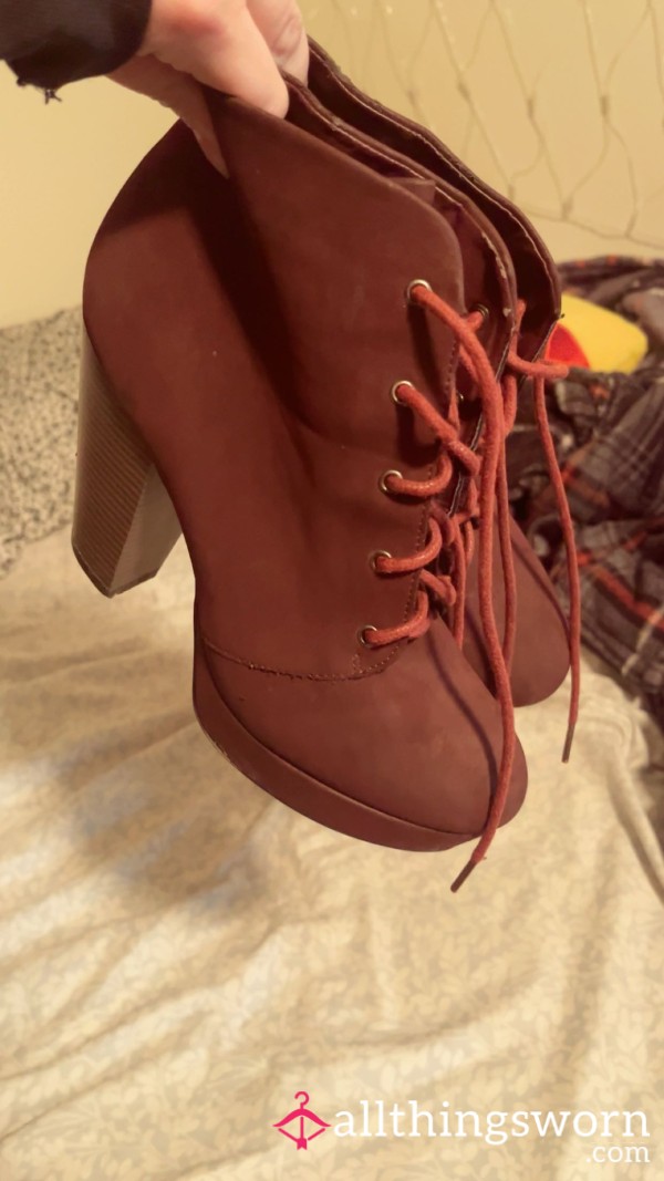 Size 7 to 8 used and dirty heeled shoes worn throughout the night...
