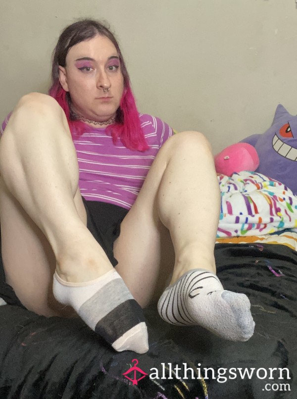 Filthy white ankle socks, worn on my day off, so lots of cleaning and walking done in these....