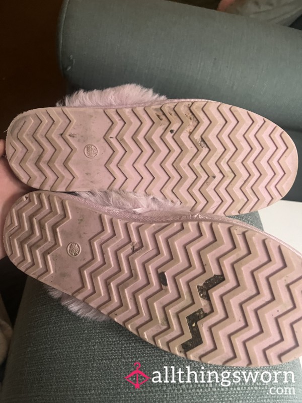 Well loved and well worn fuzzy JoySpun slippers that I’ve worn for over two years with no socks...