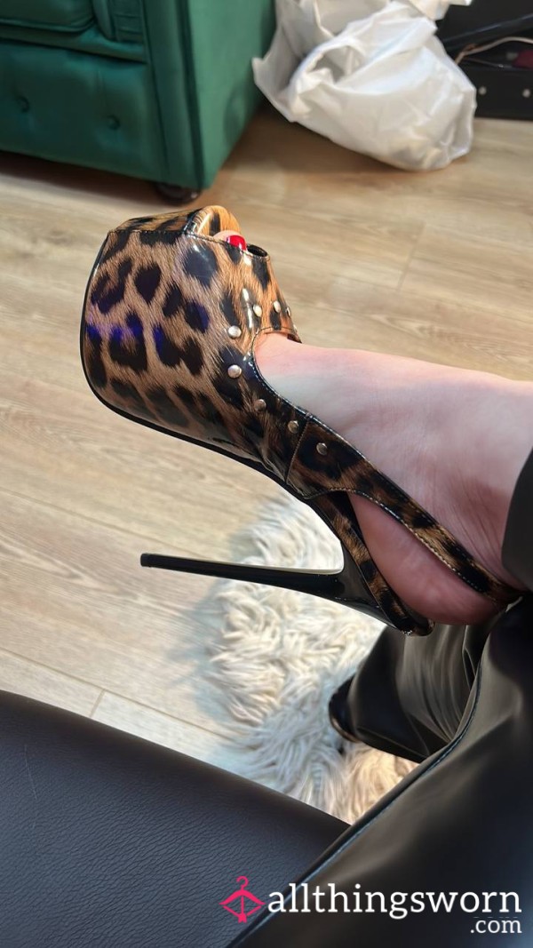 Very well worn high heels leopard print...