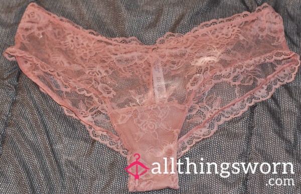 Oh my, I just had to share these with you. They're my new favorite peach-colored lace panties, and they're absolutely gorgeous. blush