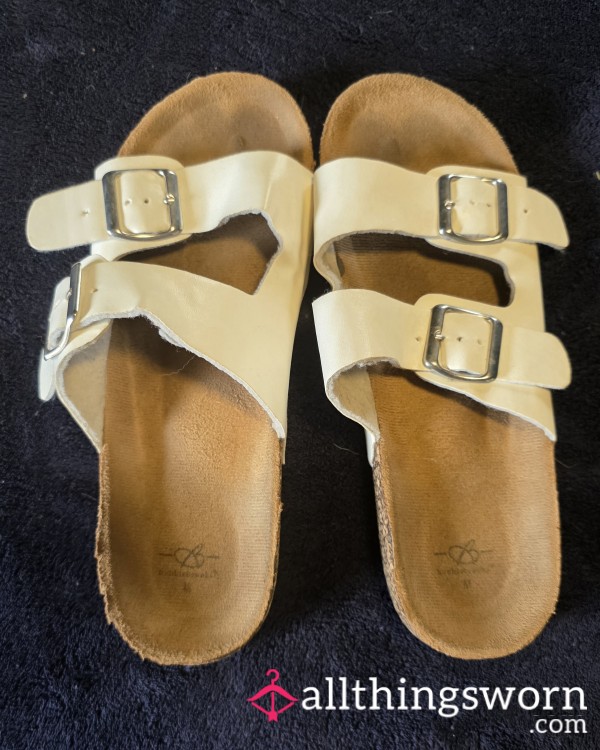 Black canvas/cloth flats with cloth insole & buckle accent over toe. Very dirty! Right insole is coming loose...