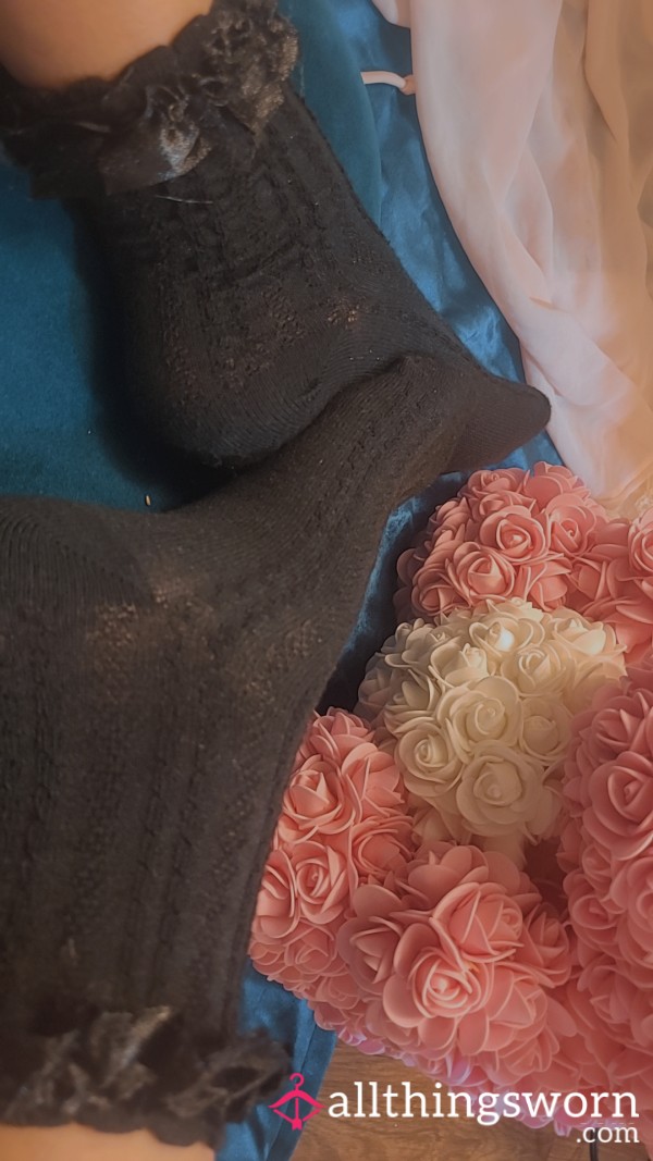 Black stockings or socks, lace details, dark fabrics, silver accents. Always composed. Always intentional.😈