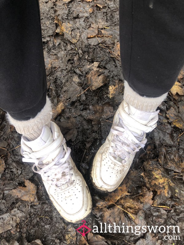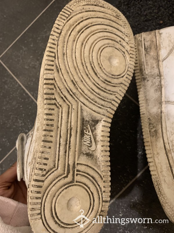 The white leather is dulled now, scuffed and greyed where it used to be bright. Dirt has settled...