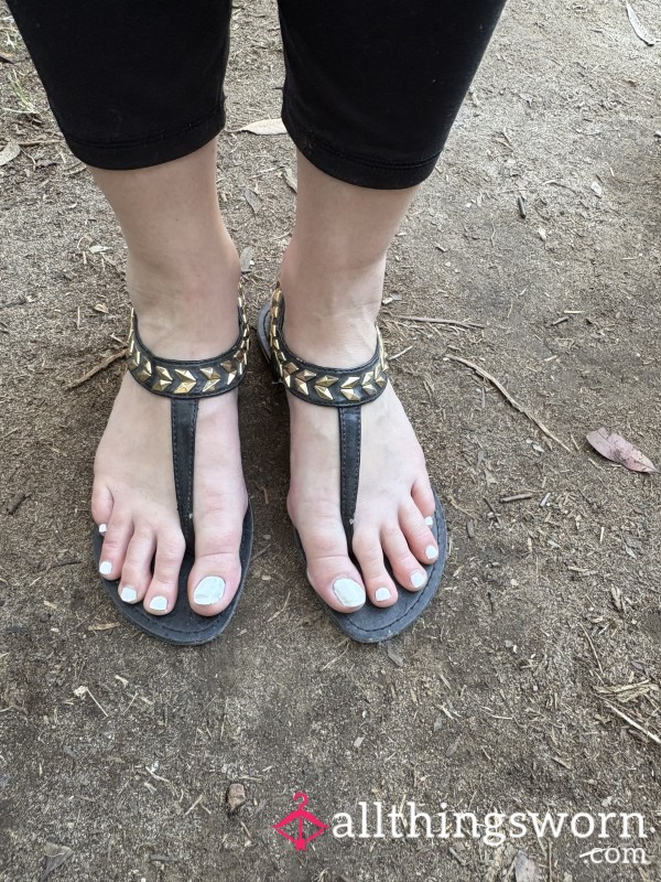 A pair of Mummas very loved, very well worn sandals.. A summer staple for a few years now. Always worn when Mumma has a fresh pedi to make all the foot boys stareπ They have been out and about, seen lots of dancing and been on lots of nights out. It was a long hard decision to decide to sell..