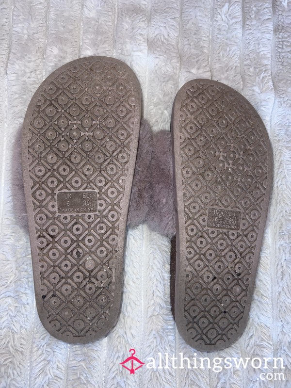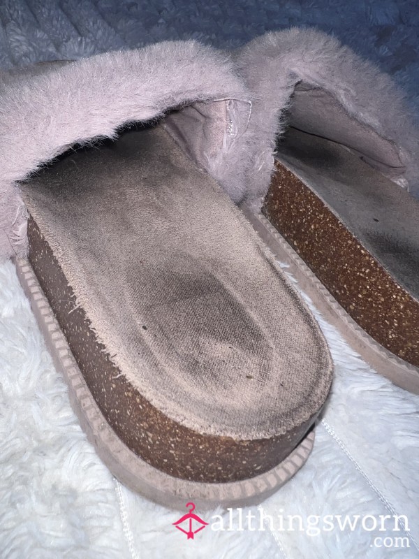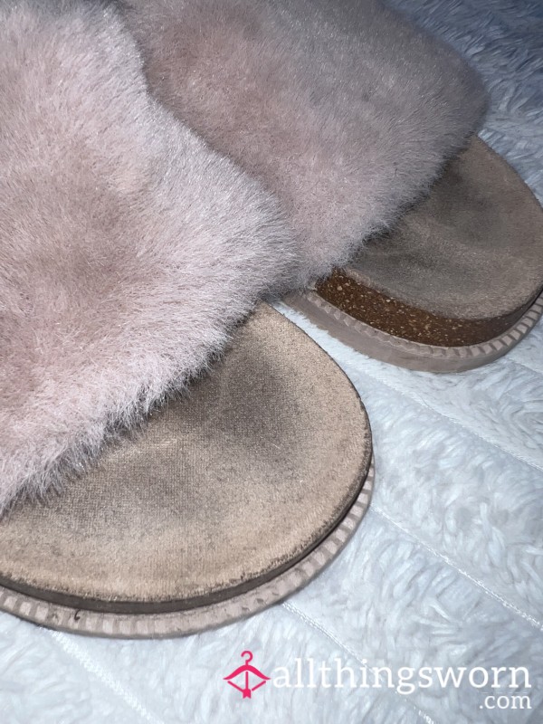 Well worn fluffy pink house slippers used everyday for 6 months size 5 UK...