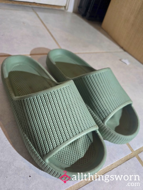 Years of abuse. These size 9 Birkenstock knock offs need a new home preferably one with a tongue...