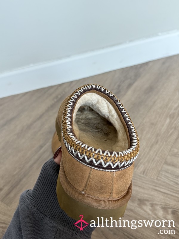 These Ugg Tasmans have been worn by me for the last two A/W seasons! They were soft and cosy and kept my feet so so warm, but now theyโre absolutely filthy inside ๐คข I think theyโve earned their retirement! Time for me to treat myself to a new pair, and time for you to claim these well loved ones ๐