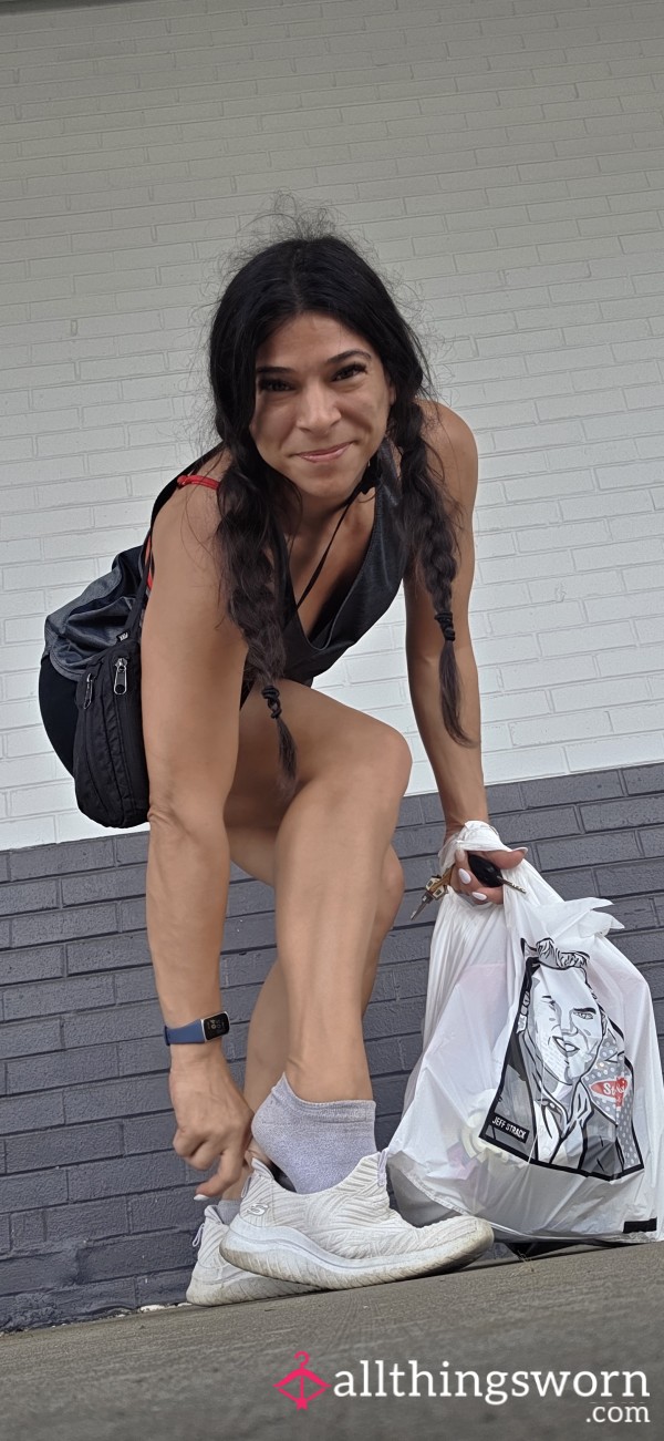 How would you like to receive 50 photos of me while I'm wearing these cute little white slip ons? I will send you ten photos a day during our wear. I can wear these with or without socks. These will include 5 days. And I will ship them for free with priority mail and include tracking. If you want to add a pair of socks you can pick any pair for $20