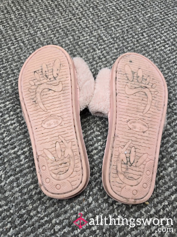 Very worn slippers! Always worn with out socks! In and out the house! Get your money out! 😉...