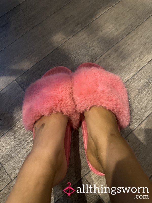 Worn fluffy slippers that made my feet warm and sweat leaving my gorgeous scent on them...