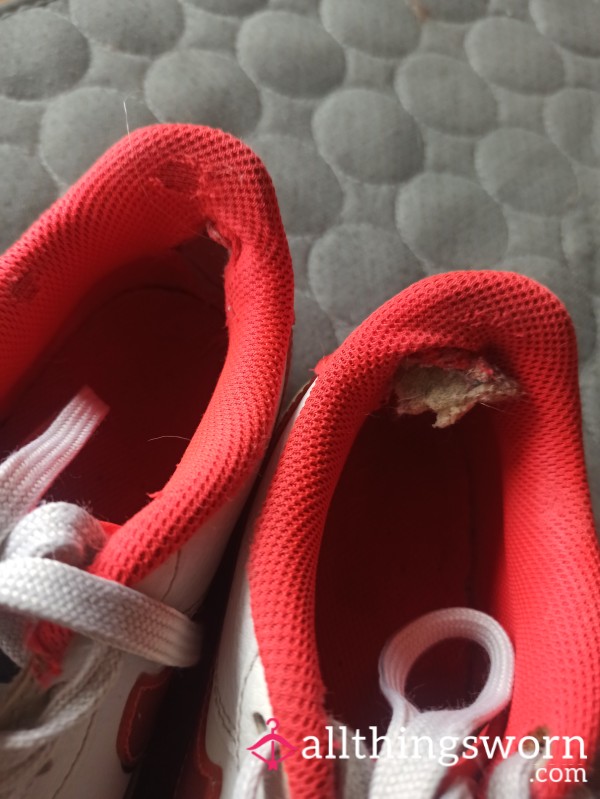 White and red Nike Air Force 1 sneakers, size 36. I've used them a lot, and now they're yours. I can customize them however you like: pi*s, sp*t, mud, trampled food, whatever you want. I'll give you a free 5-minute video and 10 photos! I ship worldwide to Europe and Italy. Anonymous shipping is possible in some countries!