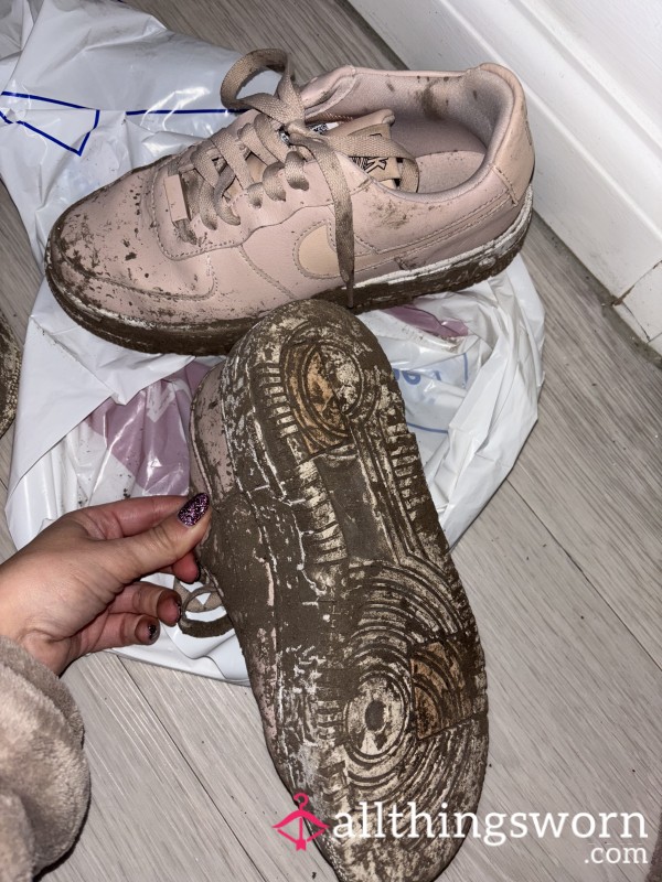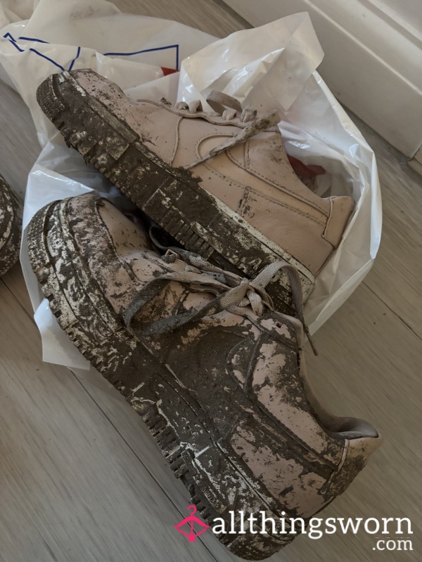 Well worn air force one trainers. Over 4 years old. Covered in mud from recent content. 4 minute video included in sale