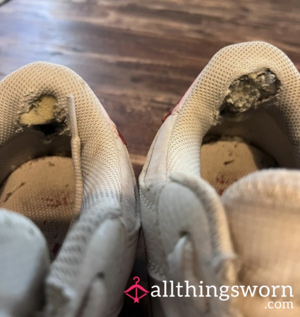 My well worn nike airforce 1 white with red and pink😍 has a lot of damage