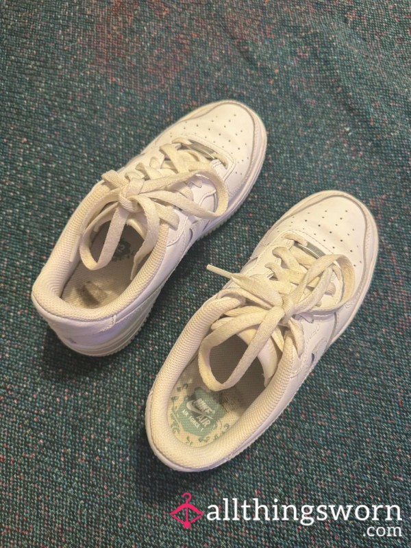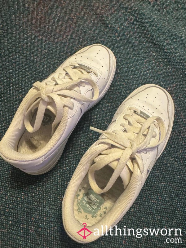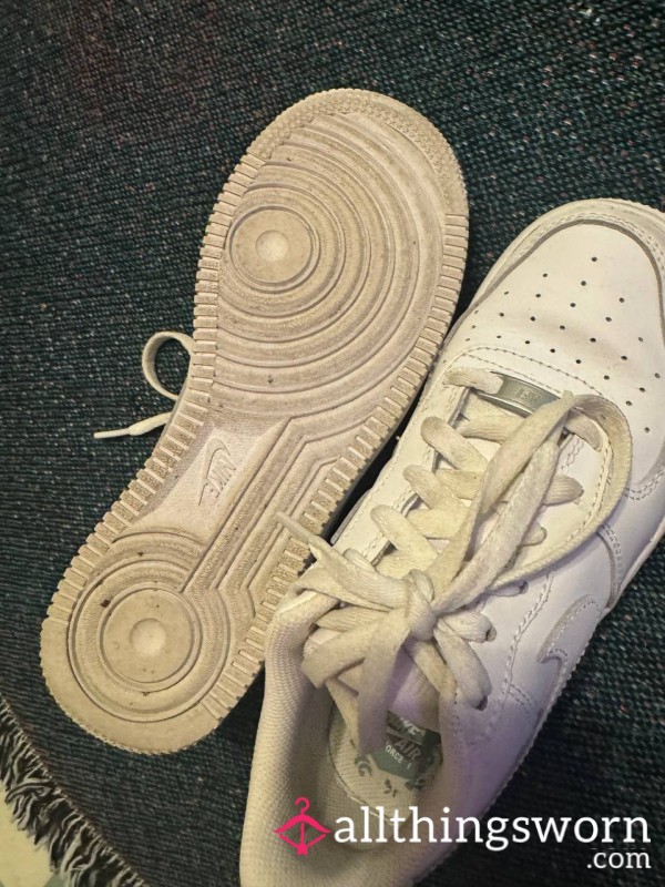Very worn and smelly black and white Nike dunks.