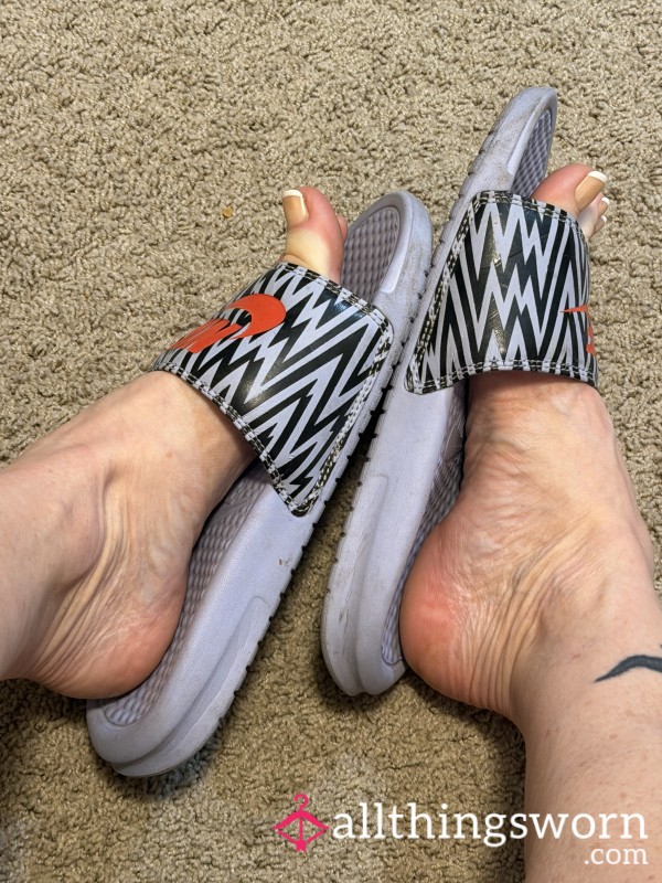 toes covered👅 Black Hugo boss full worn sliders, had for 4 years… Wear most days....