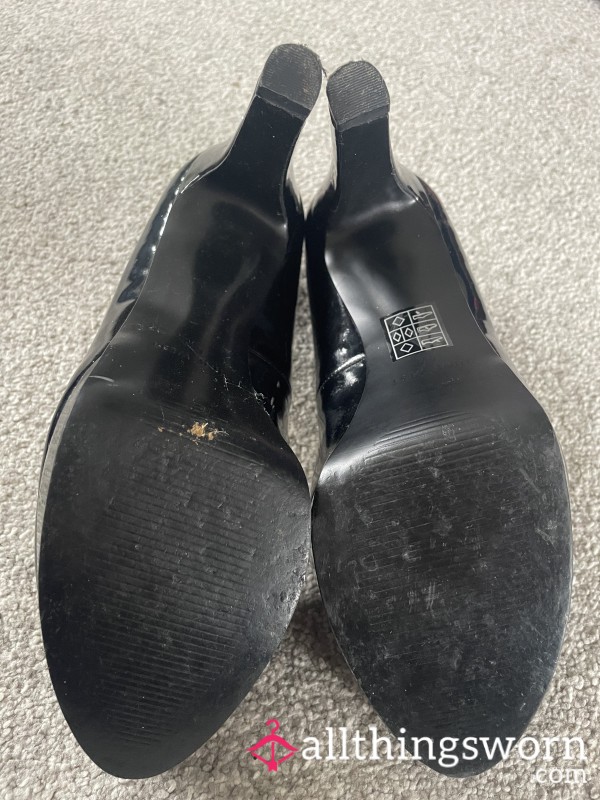 Well worn size 6 black pleather pump heels that I have worn for several photo shoots and custom...