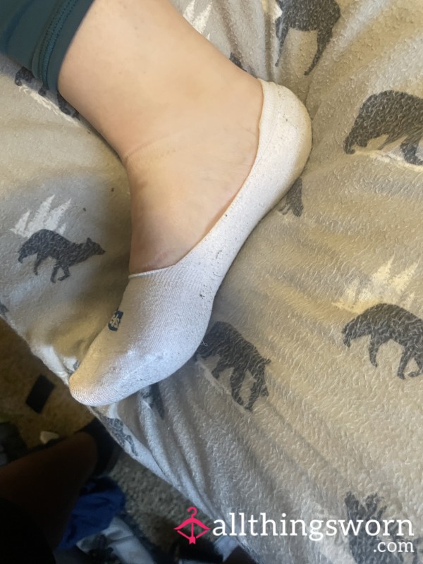 Absolutely adorable little white frilly socks with a baby pink bow 🎀 very white aside from the soles...