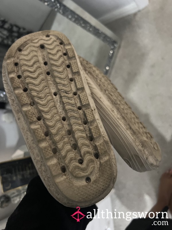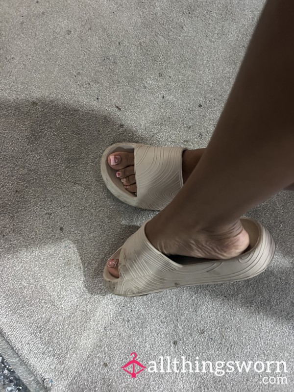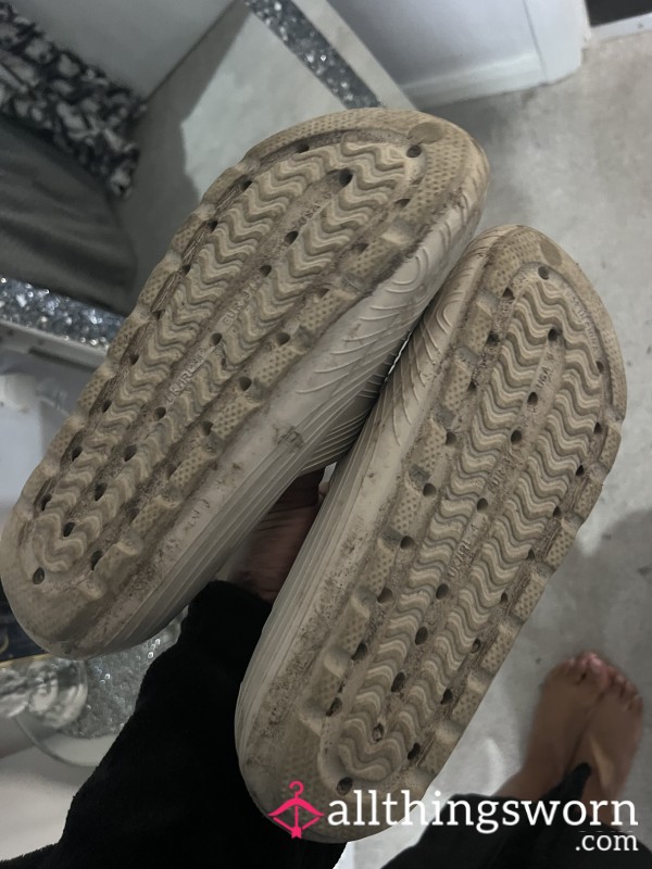 These muddy nude sliders have seen it all well worn through all types of weather, they’ve become the ultimate pair of comfy shoes. Their soft, flexible material molds perfectly to my feet, making them a dream to wear. The nude color, now kissed with a bit of mud, only adds character, showing just how much they’ve been loved and broken in over time. They’re my go-to for any casual outing, and being a UK size 4, they fit snugly and comfortably. Perfect for someone who appreciates a shoe with a bit of history and personality!