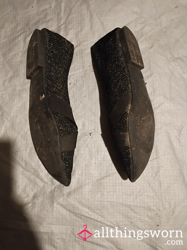 Maroon brown knit flats worn primarily for work. Sweaty and well loved but now stretched out and too...