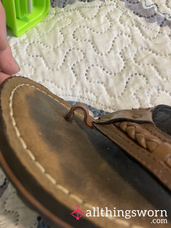 Always wore barefoot. The insoles are so sweaty they have left white marks. Perfectly horrendous.