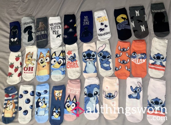Bright pink socks with light pink toes and heels. Worn for 24 hours Vacuum sealed for freshness Size 6-8...