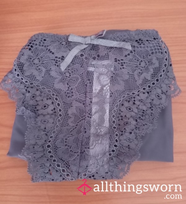 💋Preciosa mi braguita de encaje gris. Quieres olerla? Déjame un privado.