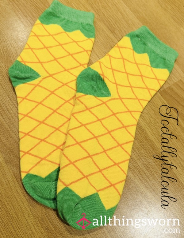 Well worn white ankle socks with ribbing. Will be worn for one 11+ hour shift. At LEAST one...