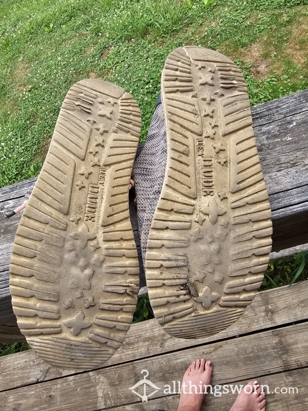 Stinky smelly very worn Tommy Hilfiger flip-flops...