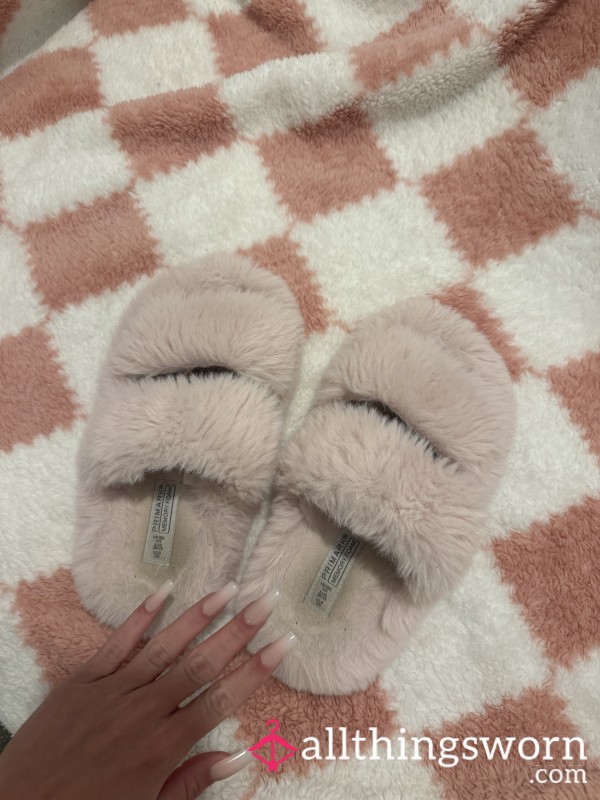 Used powder pink slippers, soft and fluffy material. Will be worn for at a week straight before shippingš„°...
