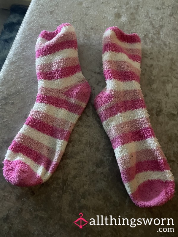 Dirty old white Nike socks they are well worn with a hole in the heel. They been worn...