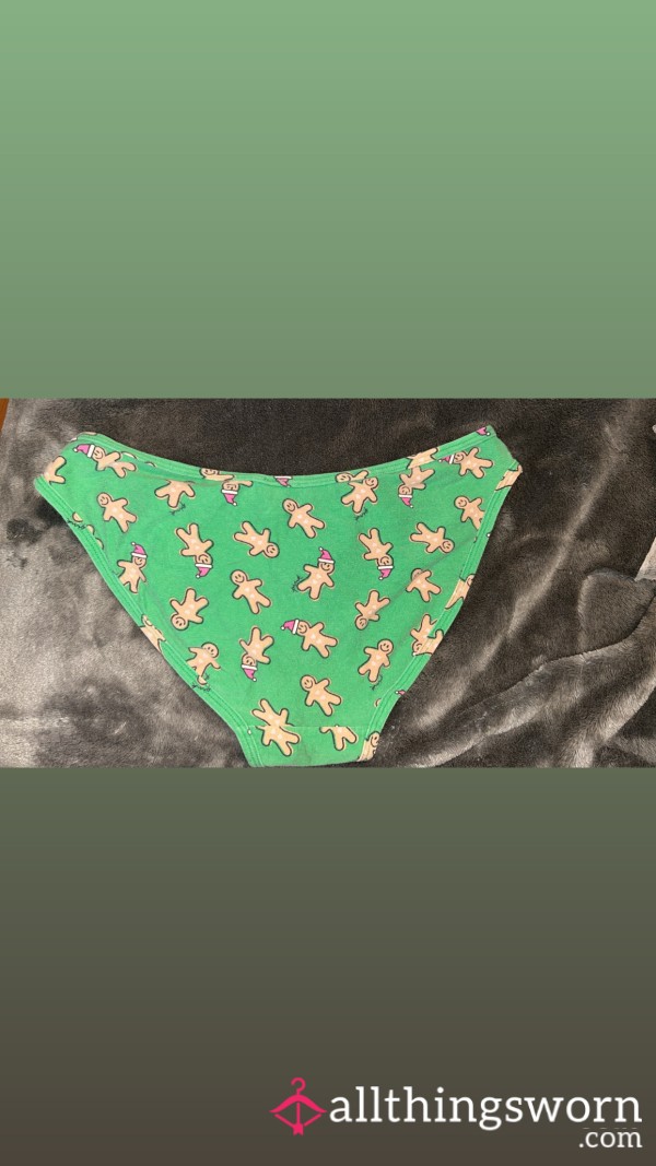 Very worn and stained PINK brand size small gingerbread Christmas panties!