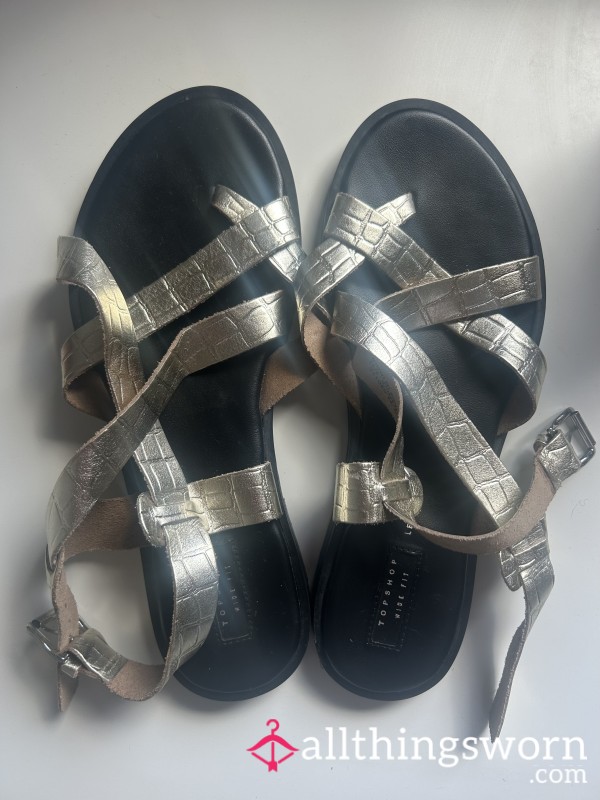 Pair of dirty, very well worn black flats. I've worn these inside and outside to do my housework...