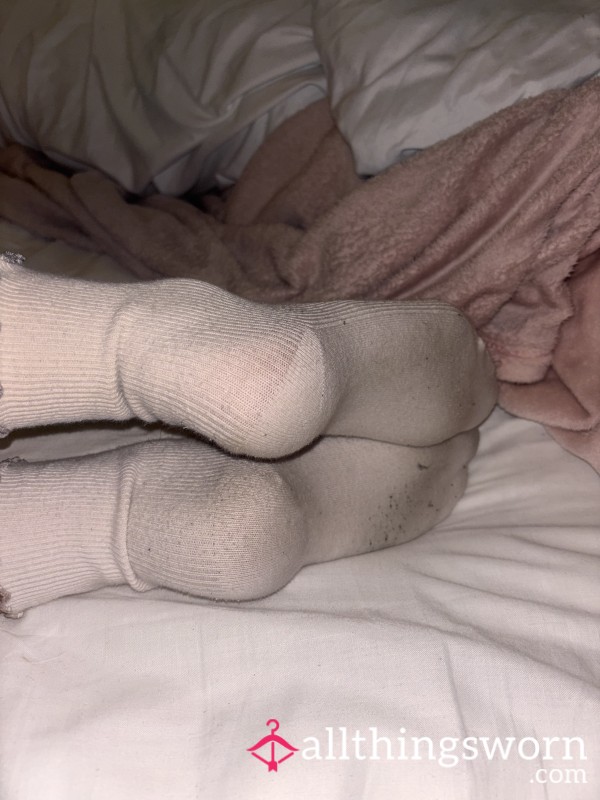 Black socks, worn for the last 2 days on 12 hour shifts on feet all day. Extra sweaty...